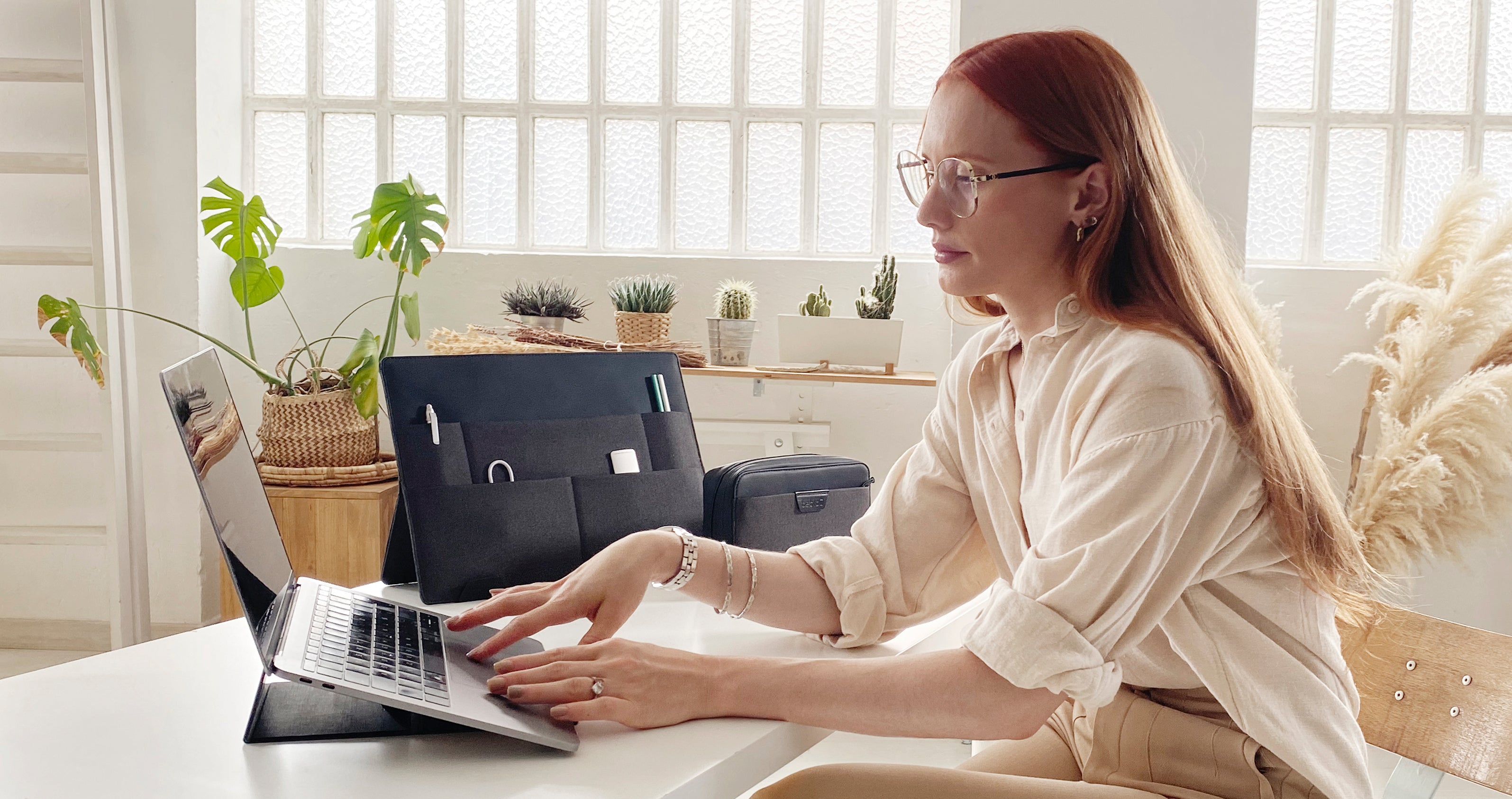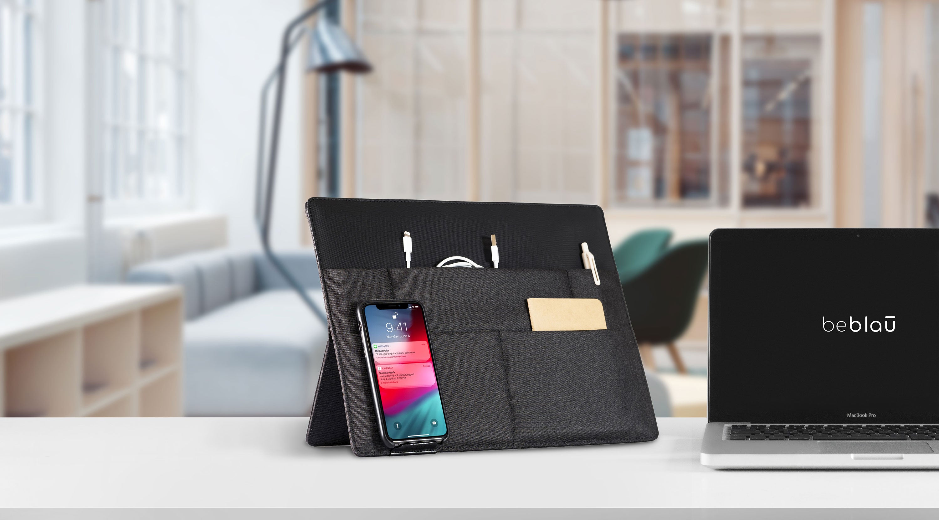 Laptop & tablet sleeve that becomes a vertical desktop organizer.